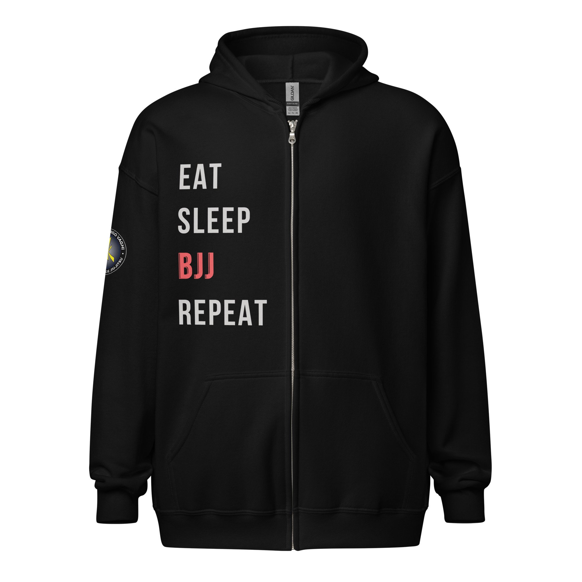 Designed with style and comfort in mind, this hoodie will quickly become your new favorite. It’s made from soft fleece inside and outside, with a sturdy metal zipper, convenient front pockets, and a hood with color-matched drawstrings.
